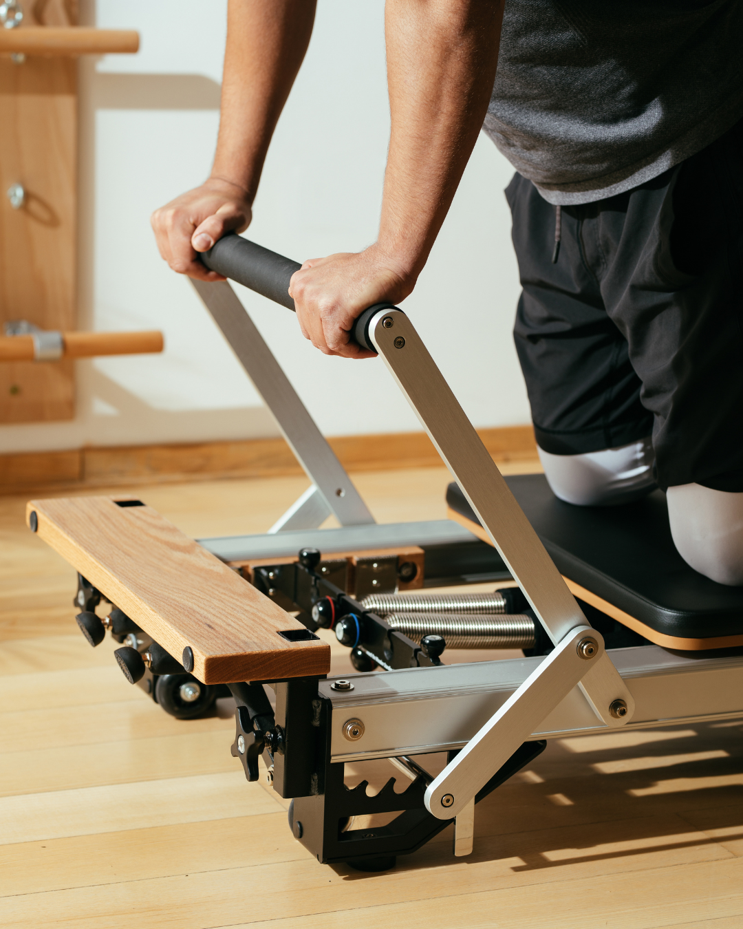 Reformer Pilates is a style of Pilates performed on a specialised machine called a reformer. The reformer uses a system of springs, pulleys and a sliding carriage to create resistance during exercises.